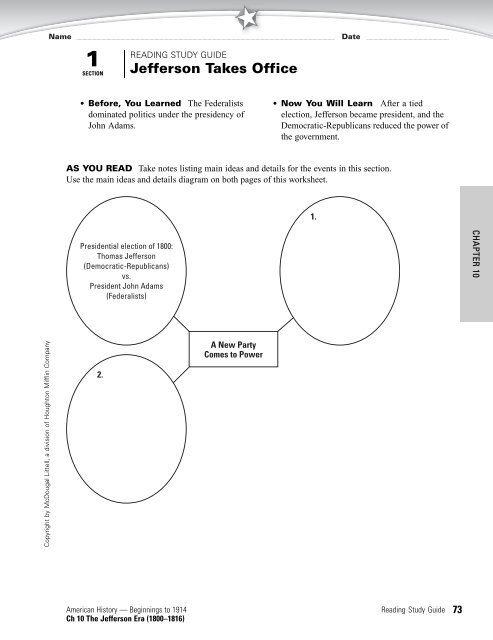 Section 1- After a tied election Jefferson became president and the Democratic-Republicans reduced the power of government. Web chapter 10 years of growth expansion. On the attached map label the following items.