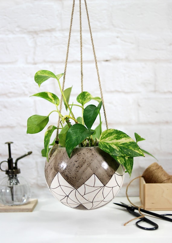 Large Ceramic Hanging Planter Indoor With Geometric Pattern Etsy Uk